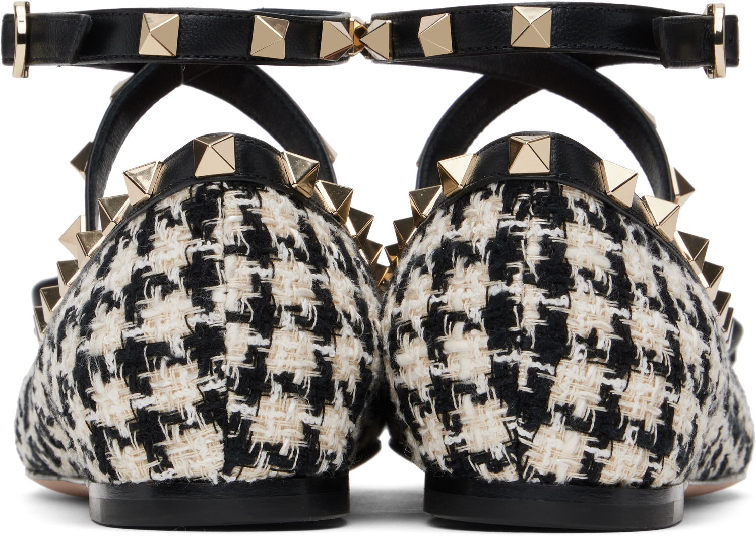 Valentino Garavani Rockstud Tweed Ballerina Flats with Bow Detail
